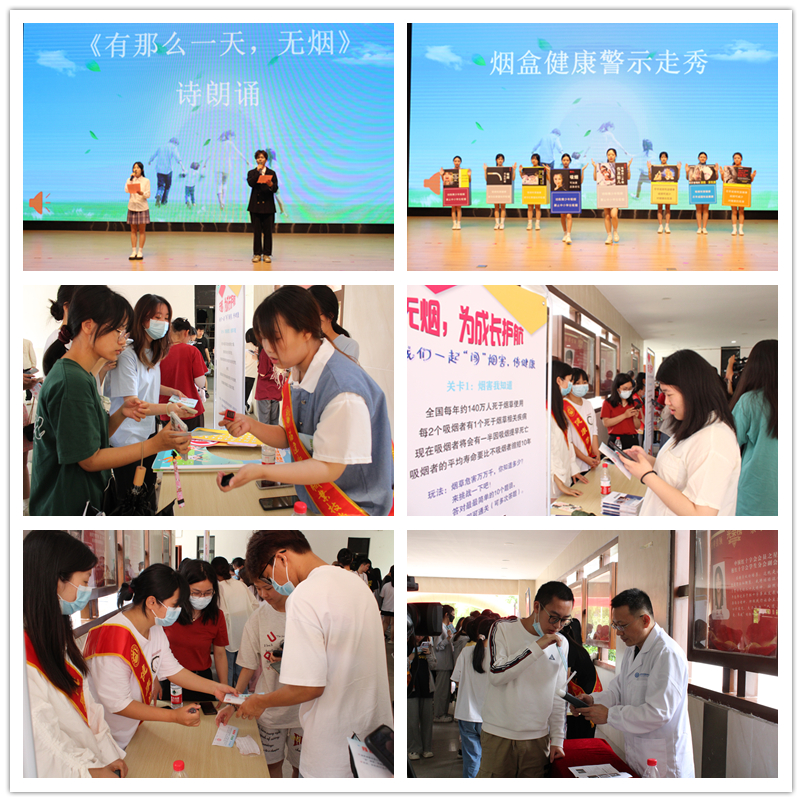 我校學生還進行了《有那么一天,無煙》朗誦表演、煙盒健康警示走秀。活動現場通過控煙宣傳展板展示、“闖煙害,傳健康”無煙日闖關打卡、“吸煙有害健康”和“公共場所控煙”科普知識宣傳,營造控煙氛圍,進一步增強廣大學生的控煙意識。