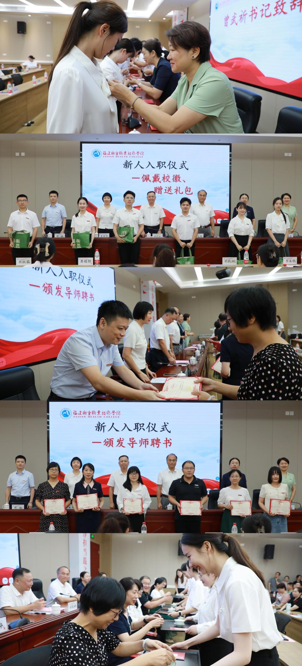 隨后,校領導為新教師代表佩戴?;?,發放入職禮包,并為新教師導師頒發聘書,共同見證“師徒結對”的莊嚴一刻。