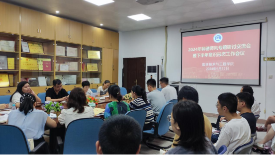 9月12日,醫學技術與工程學院召開2024年師德師風專題研討交流會暨下半年意識形態工作會議。會議由學院黨委書記柯瓊鶯主持,學院意識形態工作領導小組及辦公室成員、學院院長、專業帶頭人等參加會議。