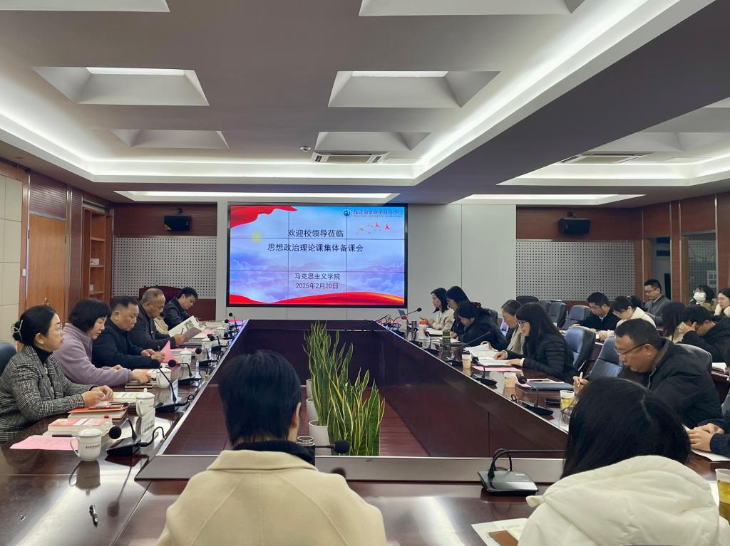 為深入貫徹習近平總書記關于學校思政課建設的重要指示精神,切實提升思想政治理論課教育教學質量,2月20日,我校馬克思主義學院在厚德樓四樓會議室召開思想政治理論課集體備課會。校領導班子成員出席會議,馬克思主義學院全體專兼職教師參加會議。會議由馬克思主義學院院長熊美蘭主持。