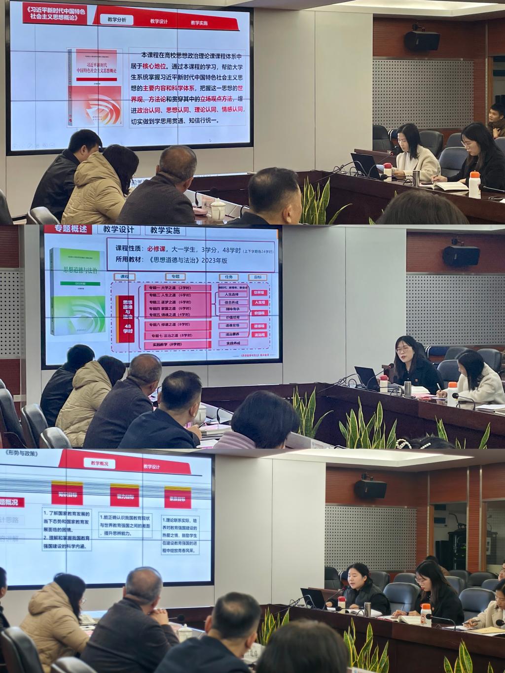 校領導分別對三門課程的集備展示進行了精準點評,高度評價集體備課成果成效,并針對教學內容的準度、深度及課程邏輯的嚴密性提出建設性意見。校長許能鋒表示,要始終以學生發(fā)展需要為中心,區(qū)分教學目標與學習目標,強化課程內容的針對性與吸引力;要聚焦內在發(fā)展需求,將黨的最新理論成果和時事熱點融入教學,使學生能夠學以致用,真正將理論知識轉化為實踐動力;要深化對教育強國的理解與認識,凝練學校發(fā)展成果,以校本化案例強化學生認知。校黨委書記曾武祈聚焦思政課建設,提出明確要求和殷切期望。一是總結提升規(guī)范化,要制定標準化集體備課流程,加強集體備課成果的總結提煉,確保備課過程規(guī)范有序。二是常備多磨高質量,要建立常態(tài)化集體備課機制,加強教學資源的共建共享,深入交流教學理念、教學方法和教學策略,共同解決教學難點問題。三是求新求進求共情,要關注學生的學習需求和學習體驗,將社會熱點融入課程建設,大膽嘗試新的教學理念、教學方法和教學手段,不斷提升課堂教學效果。四是點面兼顧節(jié)奏穩(wěn),要突出重點,統(tǒng)籌兼顧,循序漸進地引導學生實現(xiàn)課程目標,從掌握課程精髓到領悟其中蘊含的世界觀、方法論。
