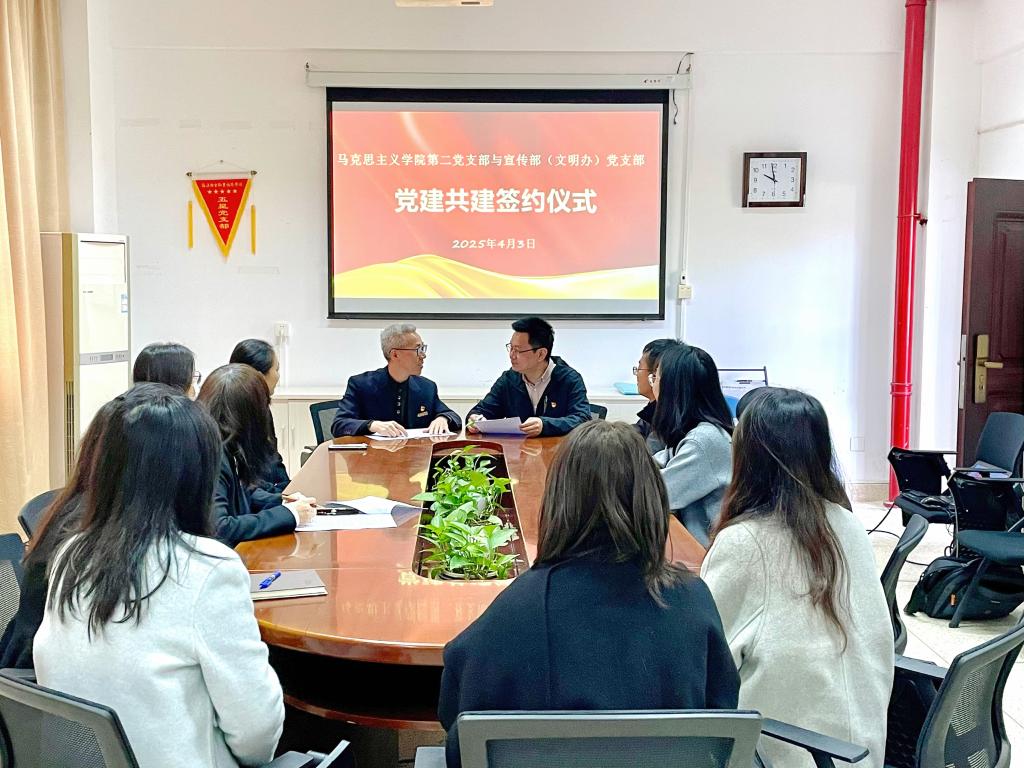 為充分發揮基層黨支部戰斗堡壘作用,推動學校機關黨建與學院黨建在落實立德樹人根本任務上的深度融合,馬克思主義學院第二黨支部與宣傳部(文明辦)黨支部在厚德樓107室舉行黨建共建簽約儀式。共建雙方表示,將以此為新起點、新契機,通過集體學習、走訪紅色實踐基地、探索網絡輿情引導隊建設、合力打造校園理論宣講團等形式,開展黨員教育陣地、理論教育陣地、網絡宣傳陣地、校園文化陣地的特色化共建,努力為創新學校基層黨建形式、提升黨建質量提供有效范例。
