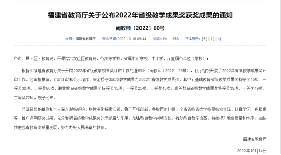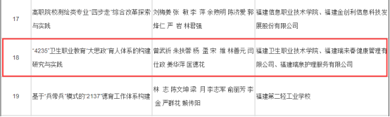 近日,福建省教育廳公布了2022年省級教學成果獎獲獎名單,由我校黨委書記曾武祈等人完成的《“4235”衛生職業教育“大思政”育人體系的構建研究與實踐》榮獲省級職業教育教學成果獎一等獎。