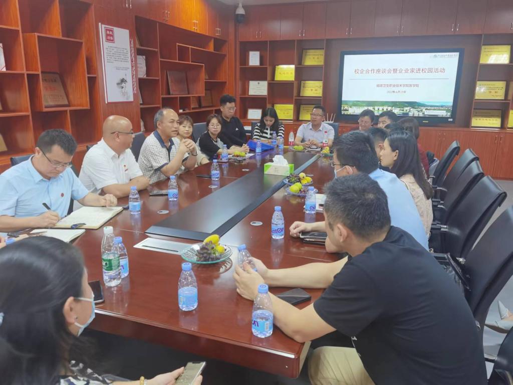 校企座談會上,許能鋒向與會企業表示誠摯的歡迎,他指出,訪企拓崗促就業專項活動已取得積極成效,感謝企業對我校人才培養、畢業生就業創業工作的大力支持,并希望雙方能以此為契機,建立長效合作機制,深化產教融合,實現資源共享、優勢互補、共同發展。他同沈鵬楠親切交流,歡迎優秀校友返校招聘,為學弟學妹引路職場,同時誠邀更多的校友們在學校110周年校慶之際常回母校,與在校生溝通交流,幫助牽線搭橋,促進就業工作提質增效。邱滾忠介紹了醫學院的發展歷程、專業建設、師資力量、實訓條件以及2022屆畢業生情況,希望雙方在合作共贏的基礎上實現精準供需對接,為企業輸送更多優秀的技術技能人才。