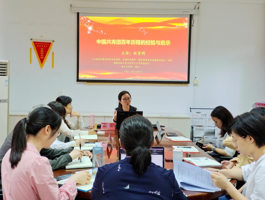 為從中國共青團百年歷程中汲取精神力量,做好青年思想政治教育工作,2022年6月9日,我校馬克思主義學院邀請福建農林大學馬克思主義學院副院長林賢明作題為《中國共青團百年歷程的經驗與啟示》的專題講座。講座由馬克思主義學院院長熊美蘭主持,全體專兼職思政課教師、學生代表參加講座。