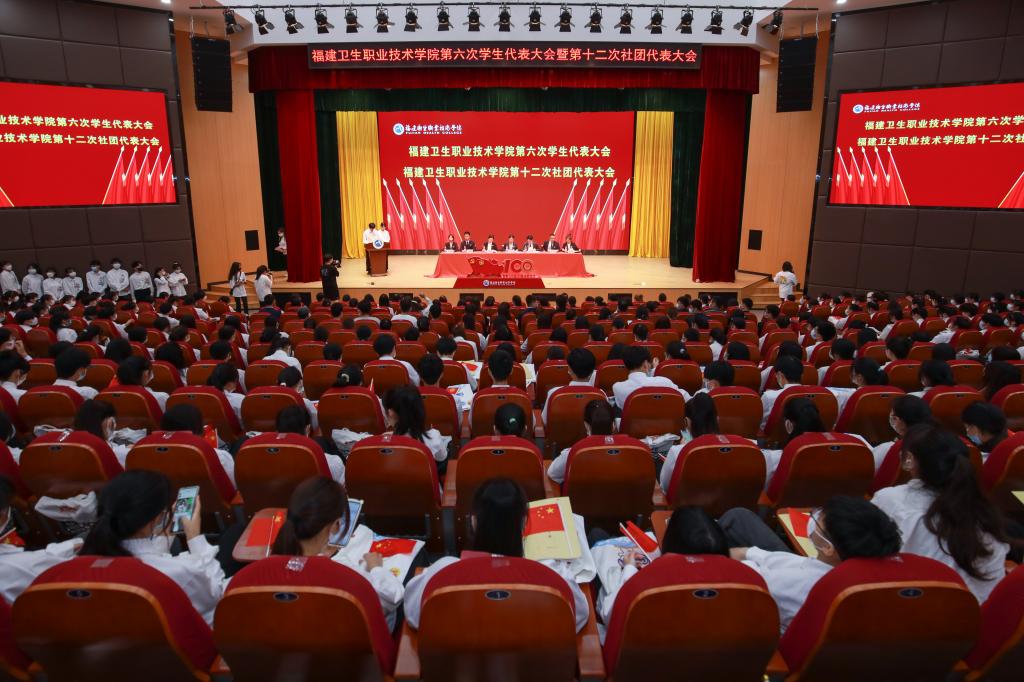 生逢盛世,使命在肩。2022年5月21日,福建衛(wèi)生職業(yè)技術(shù)學(xué)院第六次學(xué)生代表大會暨第十二次社團代表大會在學(xué)術(shù)報告廳勝利召開。福建衛(wèi)生職業(yè)技術(shù)學(xué)院黨委委員、副校長黃銘珊,黨委學(xué)生工作部部長陳俊穎、團委書記林桂松、各院系團總支負責(zé)人、各社團指導(dǎo)老師以及500余名學(xué)生代表參加,福建省學(xué)生聯(lián)合會駐會主席蘇弘戩、兄弟院校學(xué)生會、學(xué)生社團代表應(yīng)邀參會。