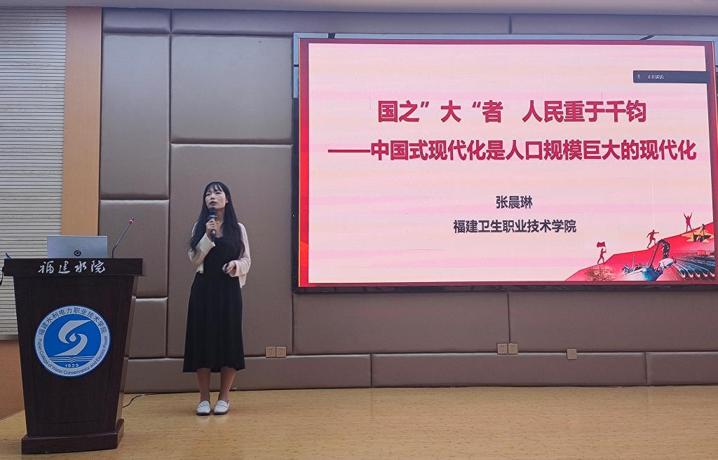 在示范課巡講環節,張晨琳以《國之大者 人民重于千鈞——中國式現代化是人口規模巨大的現代化》為題,圍繞“立足國情:人口規模巨大的現代化”“發展要義:現代化的本質是人的現代化”“賡續接力:繪就中國式現代化青春畫卷”三個方面梳理本講的內在邏輯。張晨琳的教學展示思路清晰,教學設計富有特色,具體體現黨的二十大精神“三進”工作的推進,獲得評委專家和與會老師的一致好評。