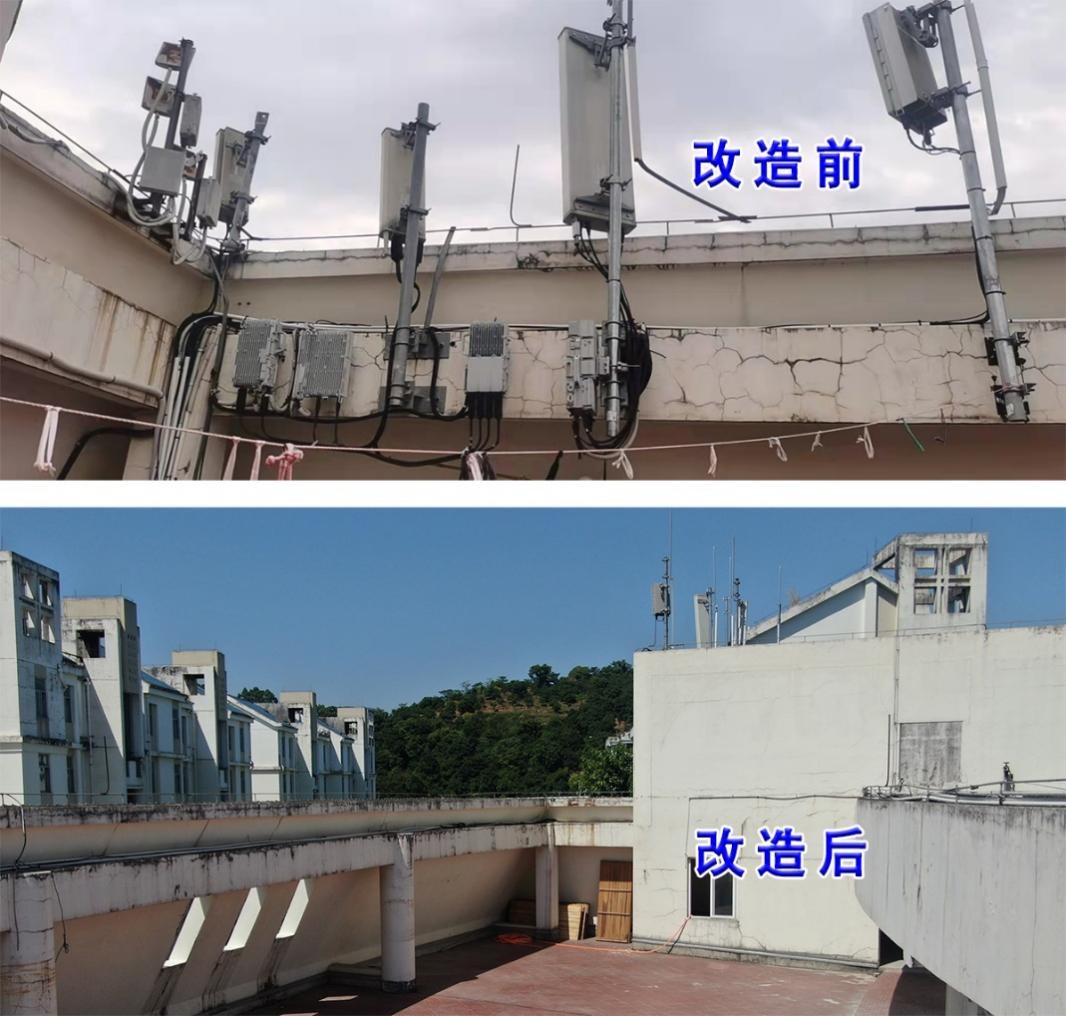拆除并優化明湖餐廳4樓等場所的運營商基站抱桿,消除管線“蜘蛛網”等視覺污染,校園環境更加清爽整潔。