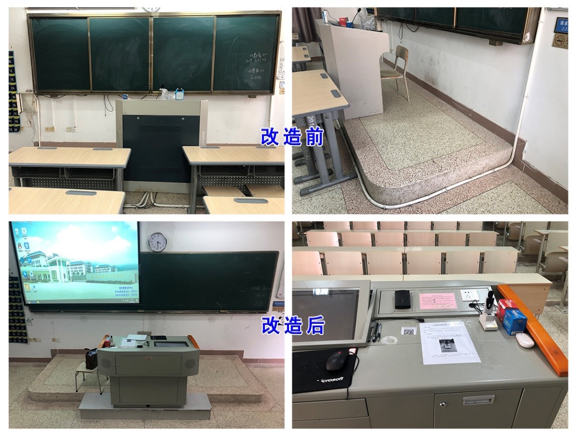 學校分批對教學樓教室進行線路改造,將教室內裸露的線纜重新更換并開槽鋪設暗線,解決教室線路老舊、投影不清晰等問題;升級教室麥克風等設備,提高擴聲質量,營造優質教學環境。