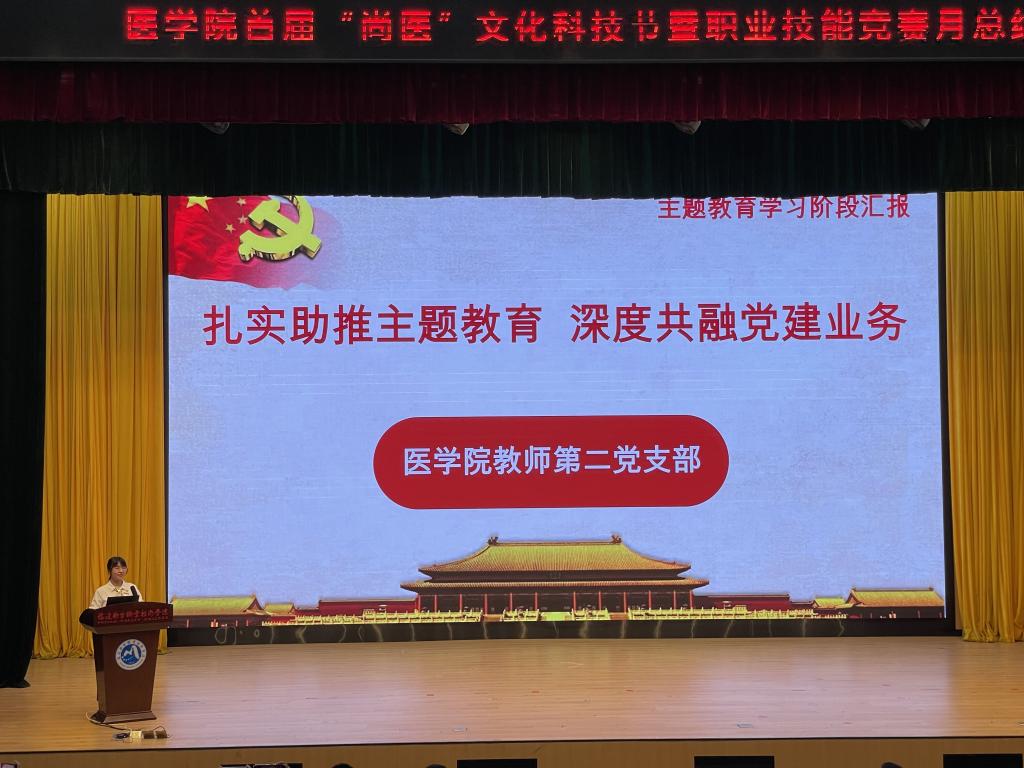隨后,醫學院各支部代表結合主題教育作階段性匯報。今年4月以來,醫學院各黨支部認真貫徹落實學校關于深入開展學習貫徹習近平新時代中國特色社會主義思想主題教育的工作方案,按照“學思想、強黨性、重實踐、建新功”的總要求,堅持學思用貫通、知信行統一,把習近平新時代中國特色社會主義思想轉化為堅定理想、錘煉黨性和指導實踐、推動工作的強大力量,努力在以學鑄魂、以學增智、以學正風、以學促干方面取得實實在在的成效。