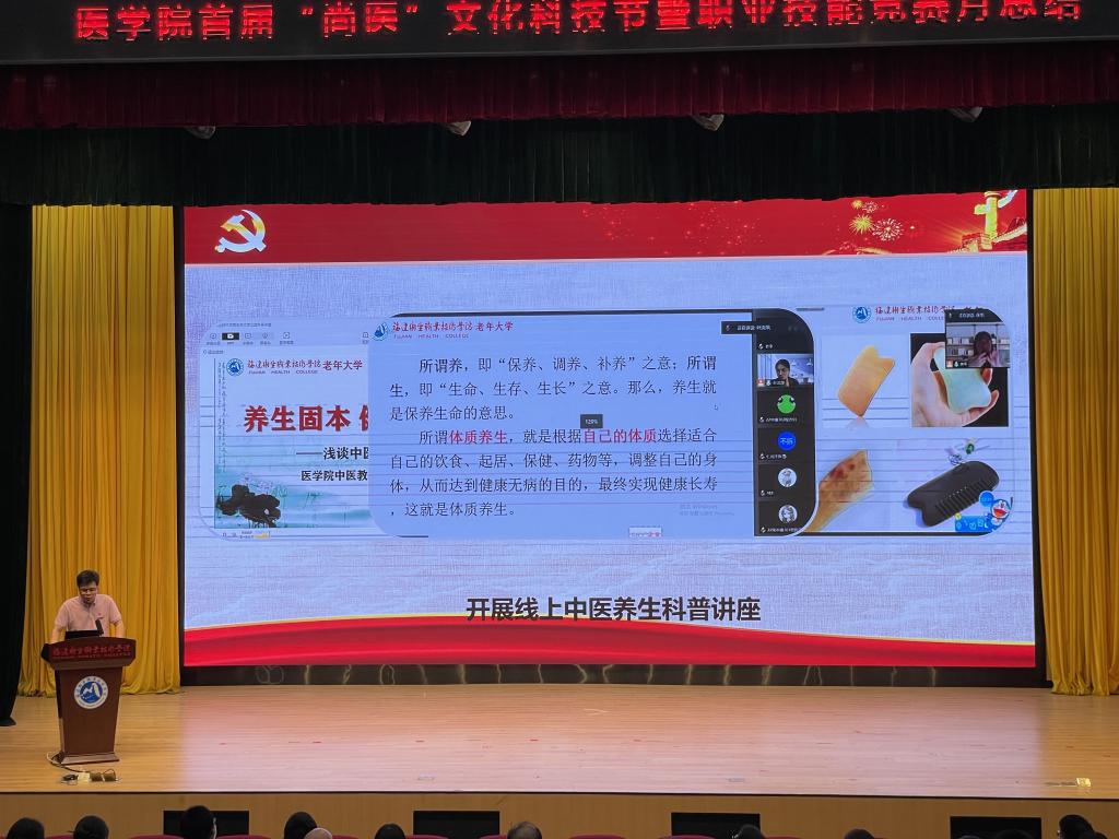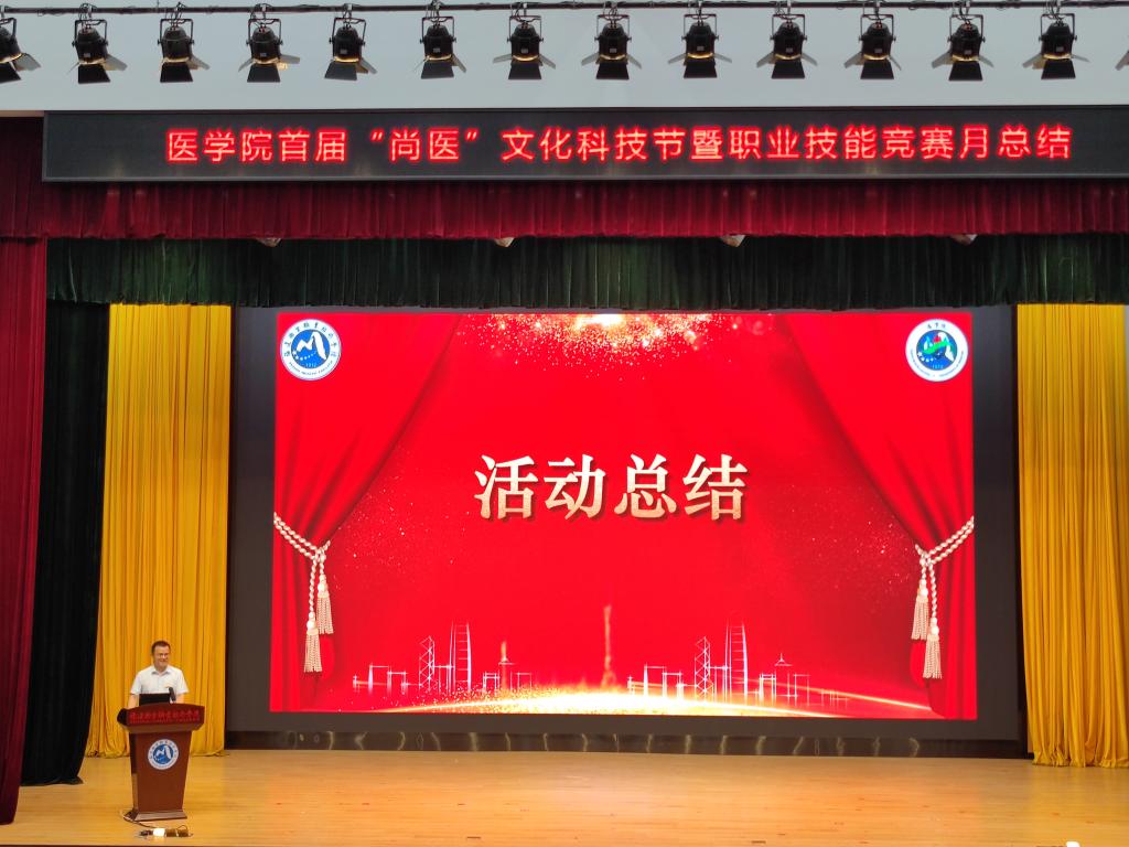 醫學院副院長鄧元榮作活動總結。他表示,本次文化科技節暨職業技能競賽月活動成效顯著,一是思想引領,融入思政,構建“三全育人”新模式;二是賽教結合,科教融匯,篩選一批競賽選手;三是產教融合,校企合作,形成協同育人案例;四是對接臨床,實踐改革,提高專業建設水平。他希望同學們用青春踐行黨的二十大精神,揚帆啟航,劈波斬浪,鑄造屬于我們這一代人的新功績。