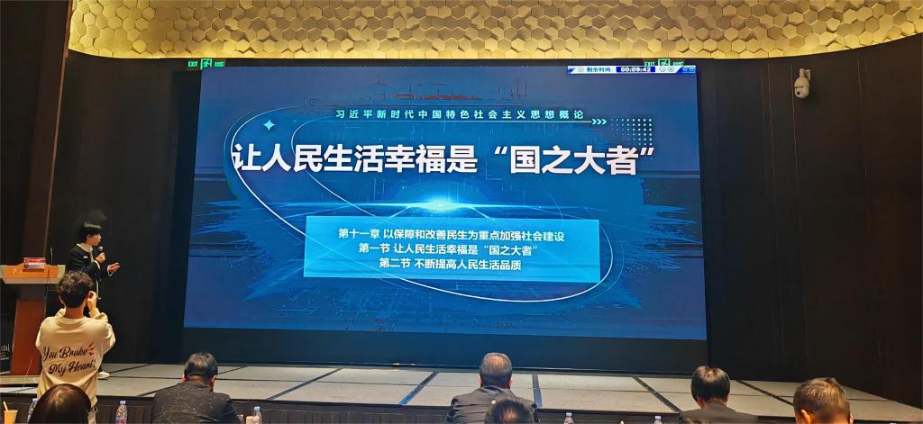 在教學展示環節,我校思政骨干教師鄭冰以《讓人民生活幸福是“國之大者”》為主題,以說課的形式,從教學設計、教學實施以及教學反思等環節進行了精彩的教學示范,為打造高質量思政金課提供了生動范例。