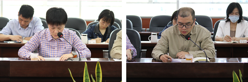 紀委辦主任張夢全領學中央八項規定及實施細則的部分內容和精神。組織統戰部副部長黃小芳傳達學習兩個清單內容。