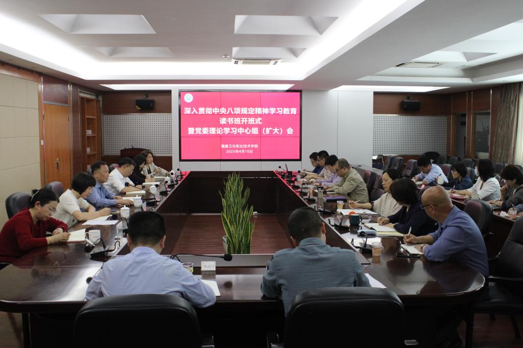 4月10日,我校在厚德樓四樓會議室舉行深入貫徹中央八項規定精神學習教育讀書班開班式暨黨委理論學習中心組(擴大)會議,校黨委書記曾武祈主持開班式,校領導、全體中層正職(含主持工作)參加會議。