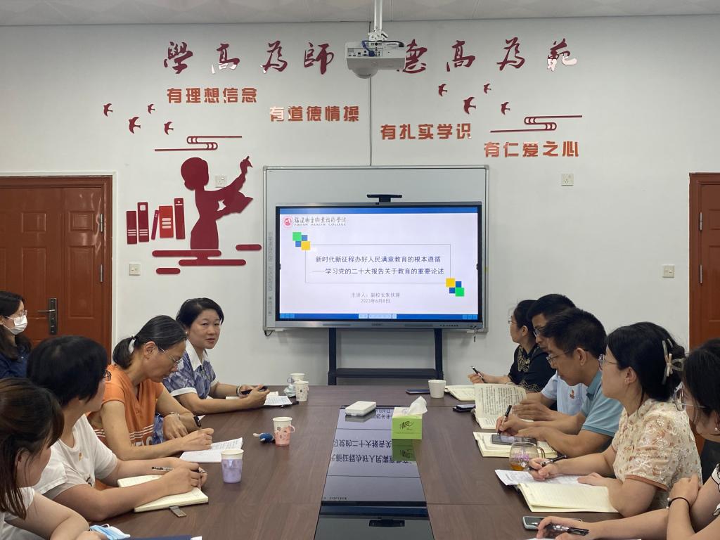 根據(jù)學習貫徹習近平新時代中國特色社會主義思想主題教育工作安排,6月8日下午,副校長朱扶蓉以《新時代新征程辦好人民滿意教育的根本遵循——學習黨的二十大報告關于教育的重要論述》為題,為護理學院全體教職工講黨課。校主題教育協(xié)調推進六小組成員林燕、黃玲云參加本次黨課,護理學院黨總支副書記林來元主持。