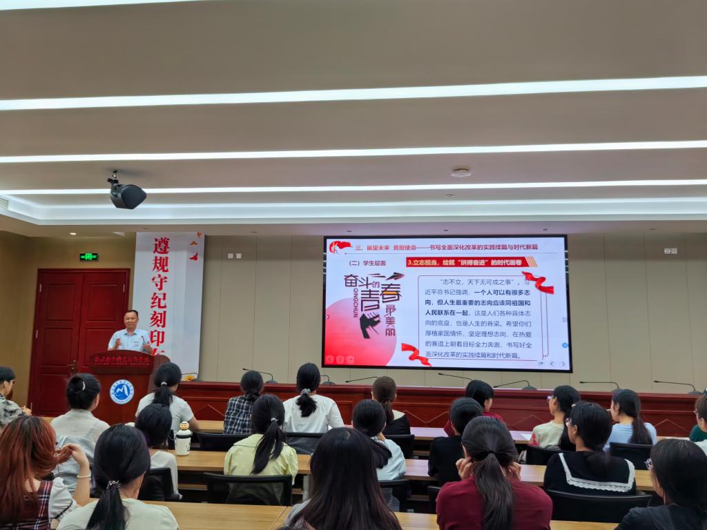 9月12日下午,校黨委書記曾武祈以“同心擘畫改革新藍圖 攜手奮進強國新征程”為題,走進24護理303、304班為我校師生專題宣講黨的二十屆三中全會精神暨秋季開學第一課。