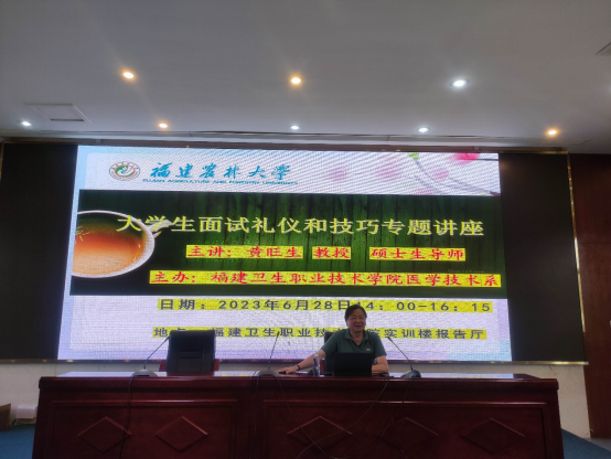 6月28日,福建農(nóng)林大學(xué)黃旺生教授來校為醫(yī)學(xué)技術(shù)系師生講授就業(yè)指導(dǎo)講座《大學(xué)生面試禮儀與技巧》。醫(yī)學(xué)技術(shù)系黨總支書記柯瓊鶯、輔導(dǎo)員代表及醫(yī)學(xué)技術(shù)系2023屆畢業(yè)生共同參加學(xué)習(xí)。
