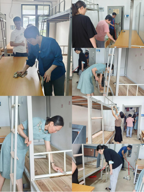 活動(dòng)中,學(xué)生黨支部黨員同志們以身作則率,自帶清潔工具,大家積極參與,相互配合,發(fā)揚(yáng)不怕臟、不怕累的優(yōu)良作風(fēng),逐一對(duì)新生宿舍地面、桌面、陽(yáng)臺(tái)進(jìn)行了認(rèn)真清掃,確保不遺漏任何一個(gè)角落。在做好衛(wèi)生清潔之際,師生黨員還仔細(xì)檢查宿舍內(nèi)桌椅、門窗等硬件設(shè)施,對(duì)可能存在的安全隱患進(jìn)行排查,為新生順利入學(xué)保駕護(hù)航。在大家的齊心協(xié)力下,地面變得干凈整潔,灰塵、垃圾一掃而空,宿舍面貌煥然一新。