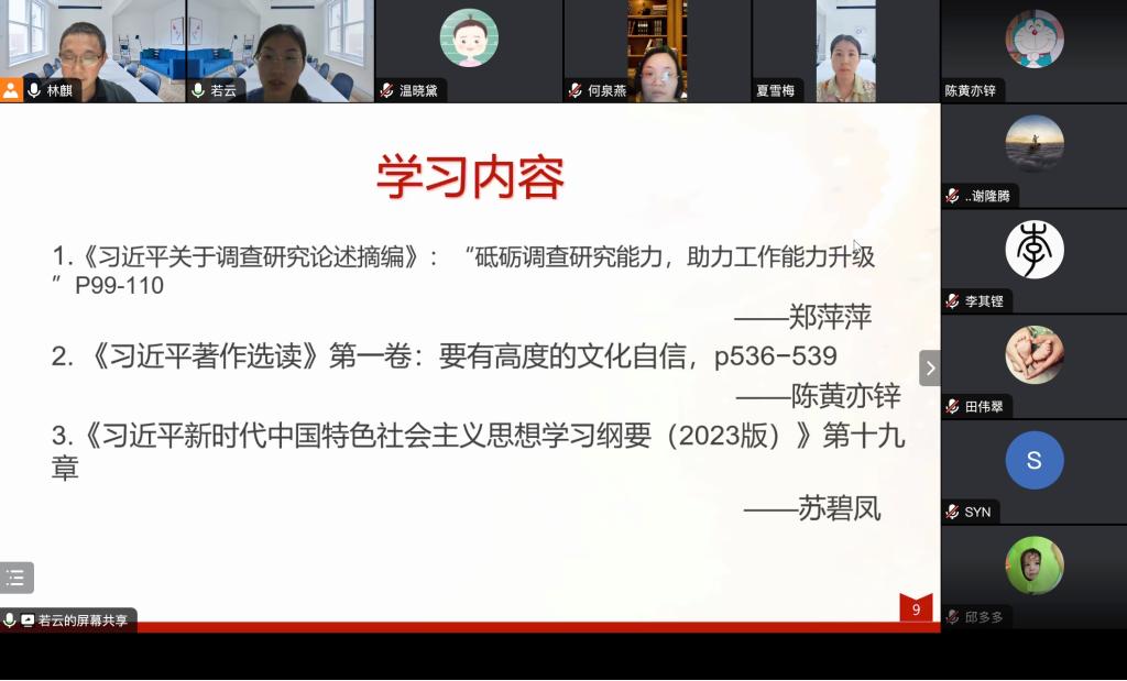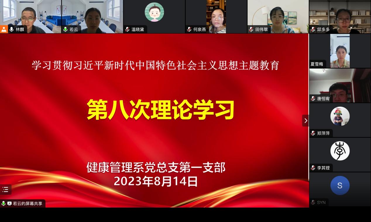 為深入開(kāi)展學(xué)習(xí)貫徹習(xí)近平新時(shí)代中國(guó)特色社會(huì)主義思想主題教育走深走實(shí),堅(jiān)持讀原著學(xué)原文悟原理,8月14日,健康管理系黨總支第一支部以線上會(huì)議形式召開(kāi)第八次專題理論學(xué)習(xí)活動(dòng)。