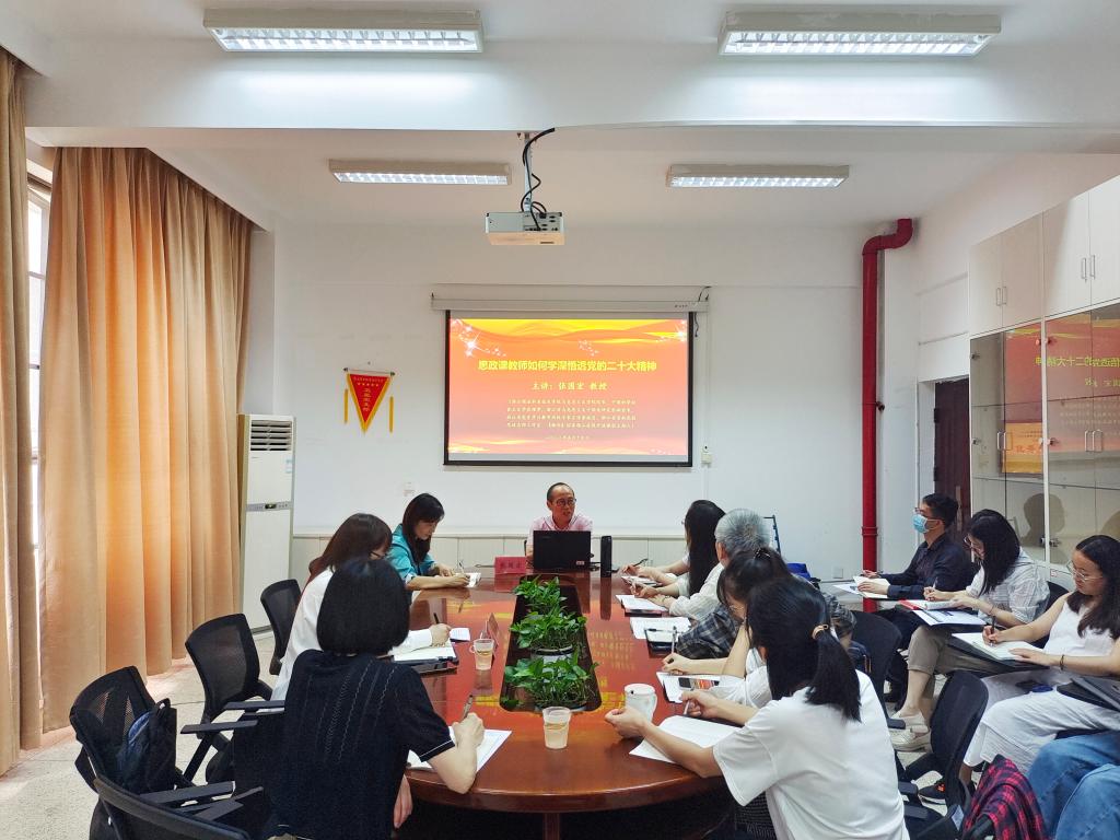 為全面、準確、深刻地理解把握習近平新時代中國特色社會主義思想,在深度融入課程教學中學好黨的二十大精神,2023年5月19日,我校邀請浙江商業(yè)職業(yè)技術(shù)學院馬克思主義學院張國宏教授在行政樓107樓會議室作題為《思政課教師如何學深悟透黨的二十大精神》的專題講座。講座由馬克思主義學院院長熊美蘭主持,全體思政課教師參加。