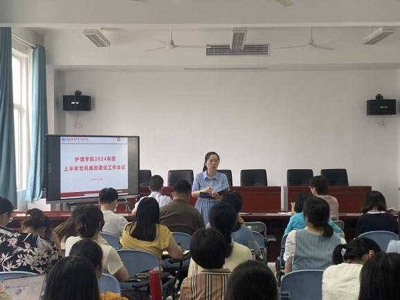 2024年7月4日,護理學院召開了2024年度上半年黨風廉政建設暨師德師風建設工作會議。此次會議由護理學院黨委書記龔海蓉主持,旨在進一步加強學院黨風廉政、師德師風建設工作,確保黨的紀律和規矩得到嚴格遵守,推動學院各項工作健康發展。