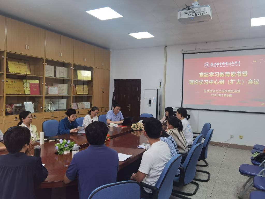 5月9日,醫學技術與工程學院開展黨紀學習教育讀書班第二次學習暨黨總支理論學習中心組(擴大)會議。會議專題學習《中國共產黨紀律處分條例》第一編總則。本次學習由黨總支書記柯瓊鶯主持,黨總支委員、黨支部書記及支部委員參加學習。