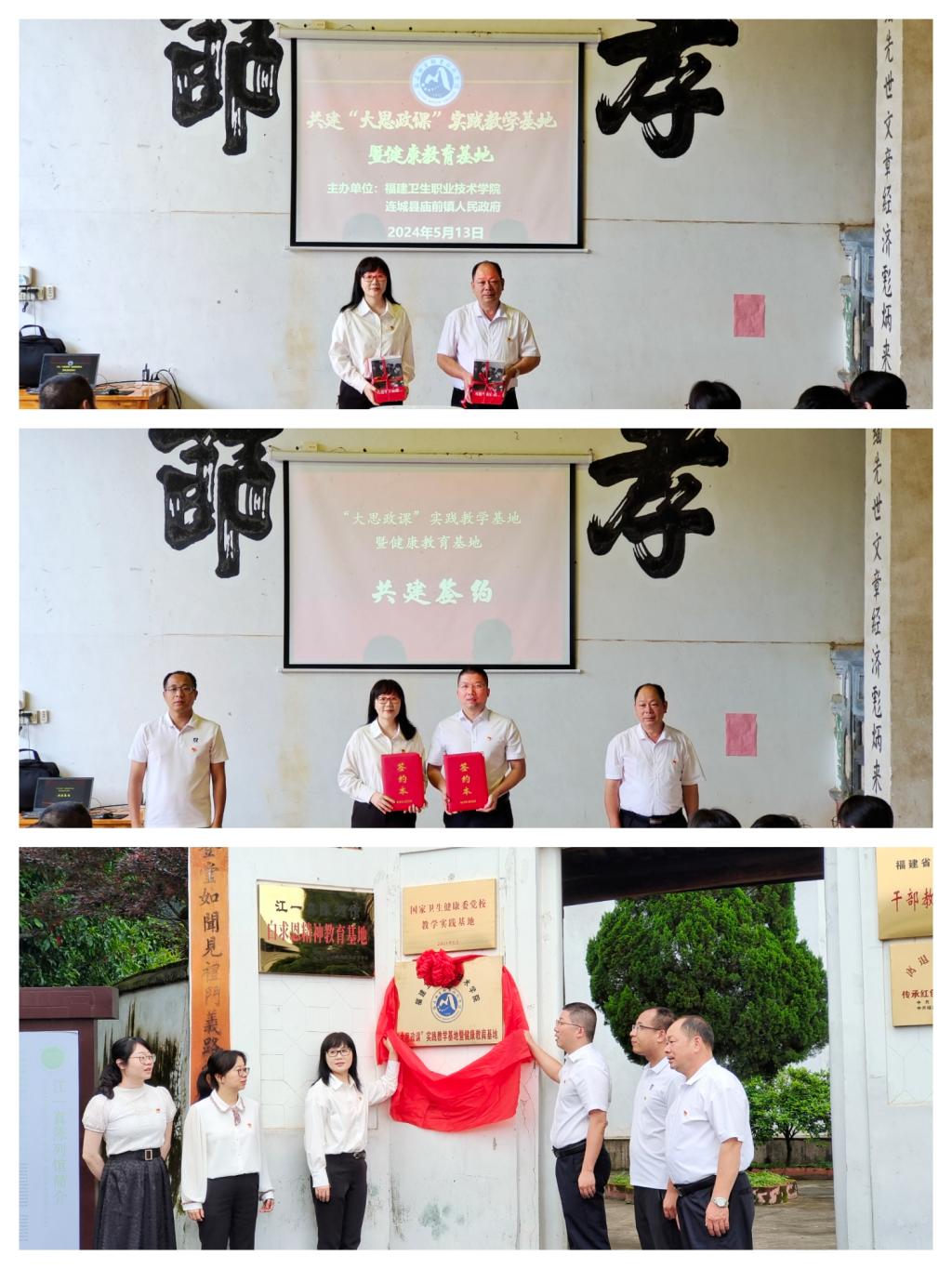 我校與連城縣廟前鎮人民政府、連城縣廟前鎮共建“大思政課”實踐教學基地暨健康教育基地簽約揭牌儀式在廟前鎮廟上村江一真陳列館隆重舉行,儀式由江發揚主持。