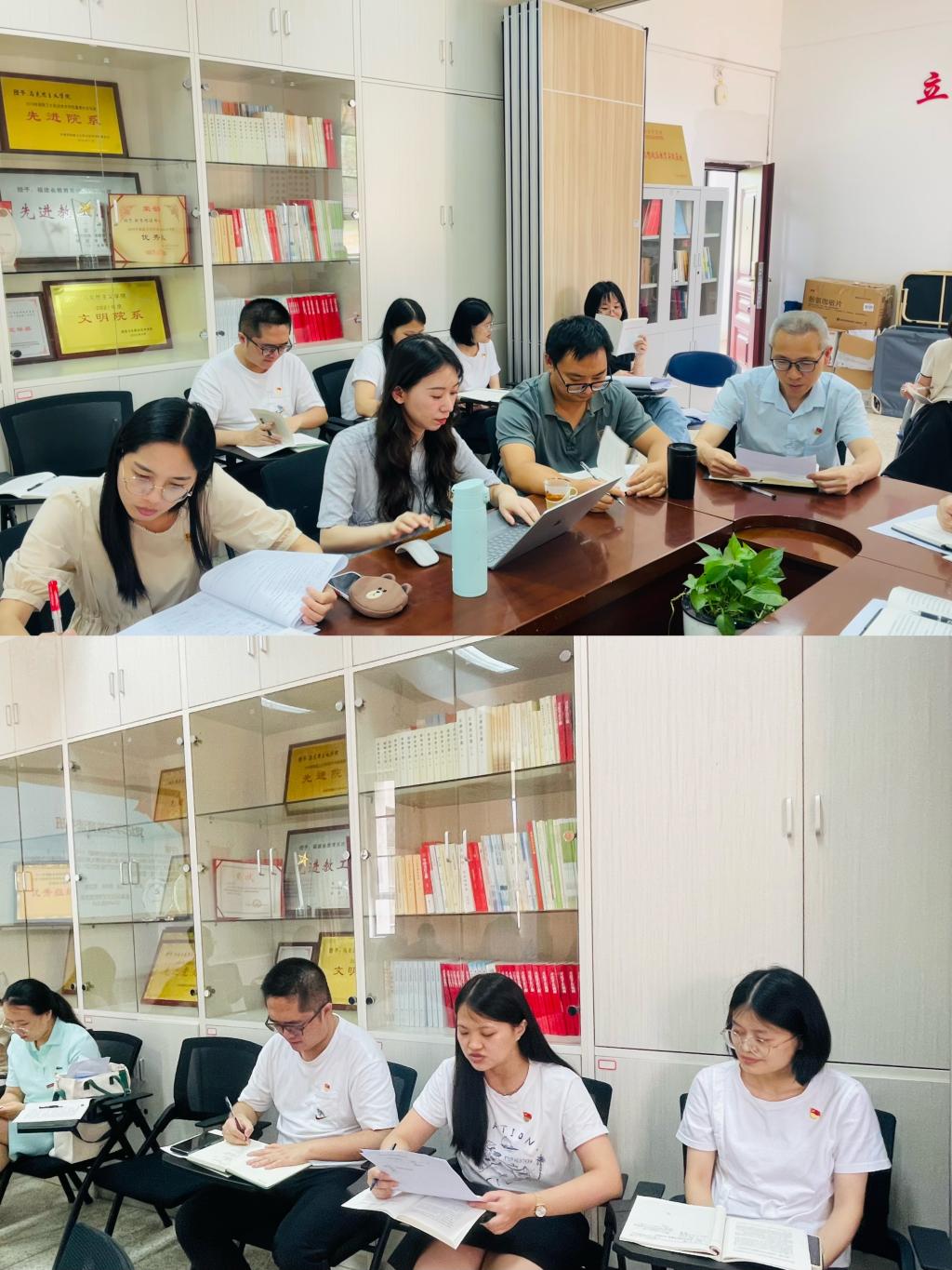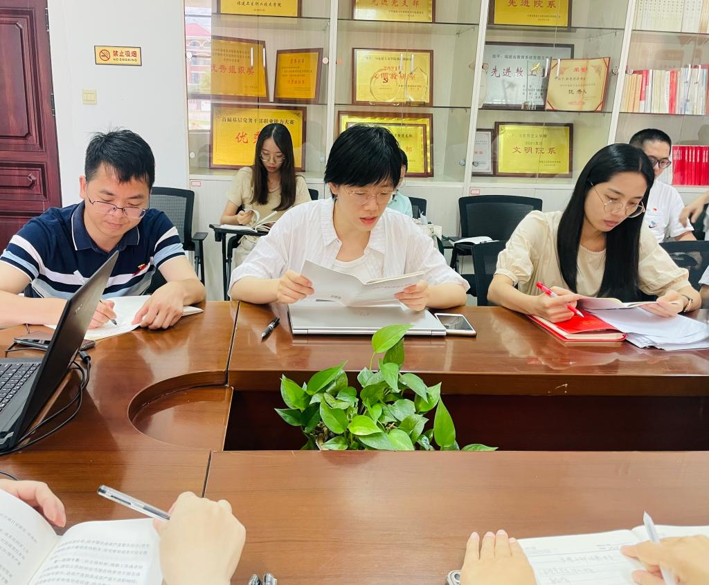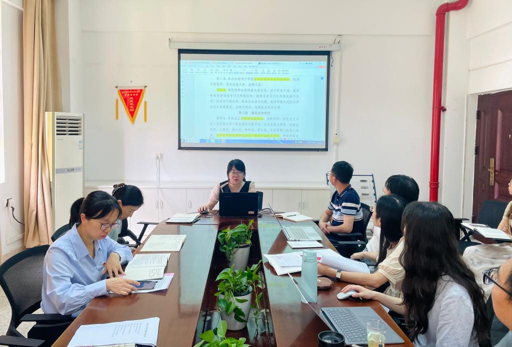 集體學習后,胡濟林同志、鄒亞彤同志進行心得交流。胡濟林堅持作為黨員,要嚴格執行黨章,堅持黨員服務群眾,教師服務學生,以創新的意識、創新的精神、創新的思路去工作,做一名廉潔自律、愛崗敬業的好老師。鄒亞彤結合自身,提出要聚焦職責定位,不斷自我反省,正視短板補齊弱項,克服育人工作中出現的消極懈怠的情緒、形式主義的作風、不求有功但求無過的態度,守好政治關、師德關、業務關,堅持育人為本,用心教育、用愛教育,做學生成長路上的擺渡人。