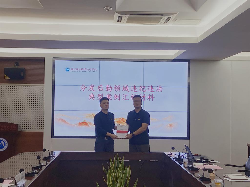 隨后,周雄向后勤管理處發放了由校紀委編印的《高校后勤基建領域違紀違法典型案例匯編材料》。