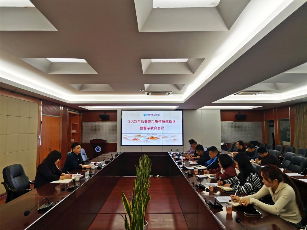 為進一步加強學校后勤領域廉政風險防控,教育引導黨員干部筑牢拒腐防變的思想防線,4月10日,我校召開后勤部門集體廉政談話暨警示教育會議。紀委書記林玲、副校長周雄出席會議并講話,后勤管理處全體人員參加會議。