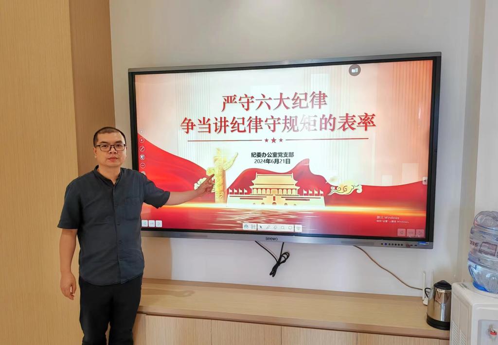 6月21日,紀委辦公室黨支部書記張夢全同志以《嚴守六大紀律 爭當(dāng)講紀律守規(guī)矩的表率》為題,為支部黨員講授紀律專題黨課。