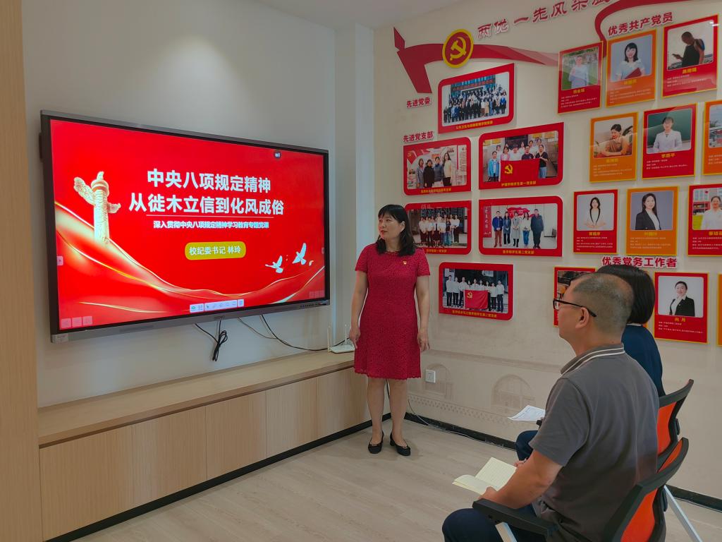 為扎實推進中央八項規定精神學習教育走深走實,提升黨員干部的紀律規矩意識和作風建設水平,2025年6月18日,校黨委委員、紀委書記林玲以《八項規定:從徙木立信到化風成俗》為題,為紀委辦公室黨支部全體黨員帶來了一場深刻且生動的專題黨課。