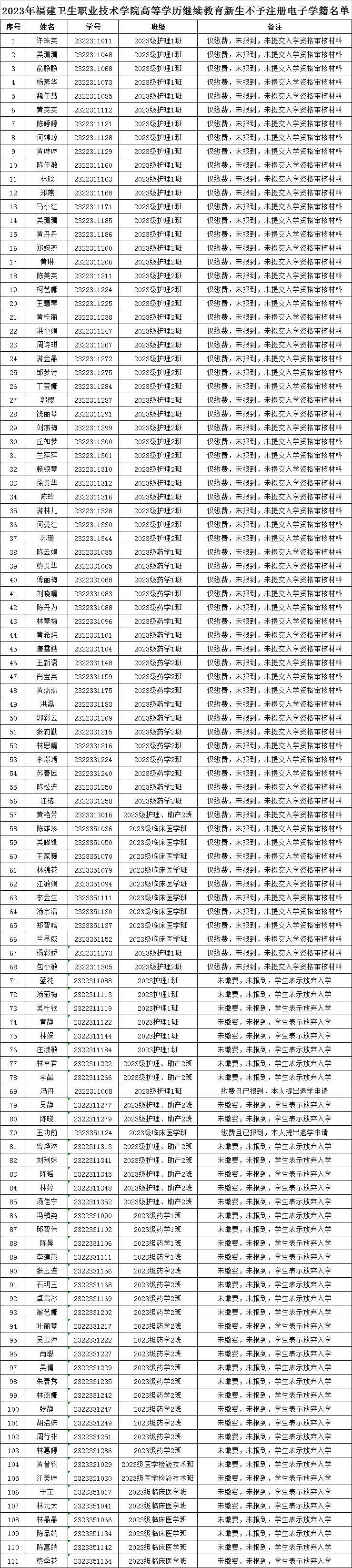 附件:2023年福建衛生職業技術學院高等學歷繼續教育新生不予注冊電子學籍名單