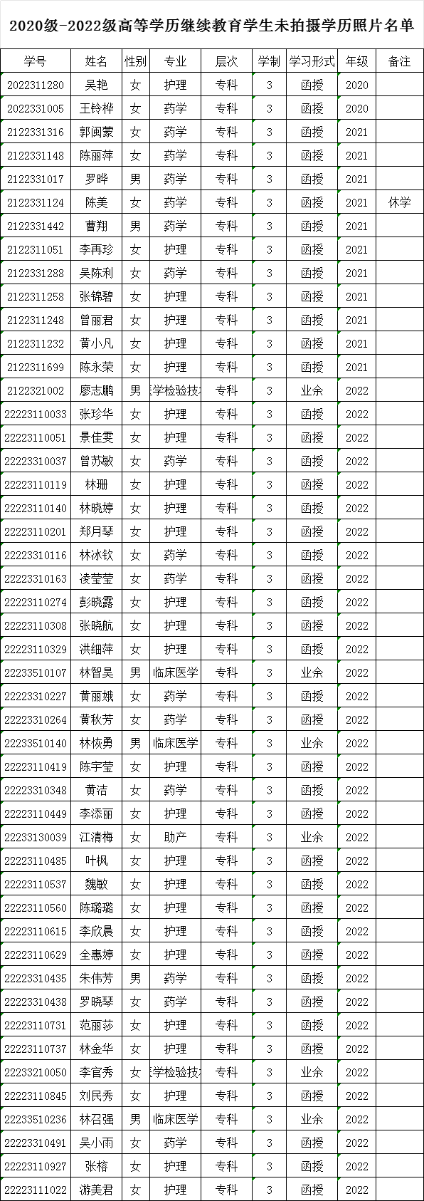 1.涉及基礎信息錯誤的需提交派出所出具的戶籍證明原件、身份證復印件、本人戶口簿復印件及戶主頁復印件等材料并填寫《福建衛生職業技術學院高等學歷繼續教育學生基礎信息修改申請表》,若是涉及錄取信息勘誤的,還需使用《福建省高等學校學生學籍信息變更申請(確認)表》,在11月1日前提交給各班主任(電子版和紙質版)。