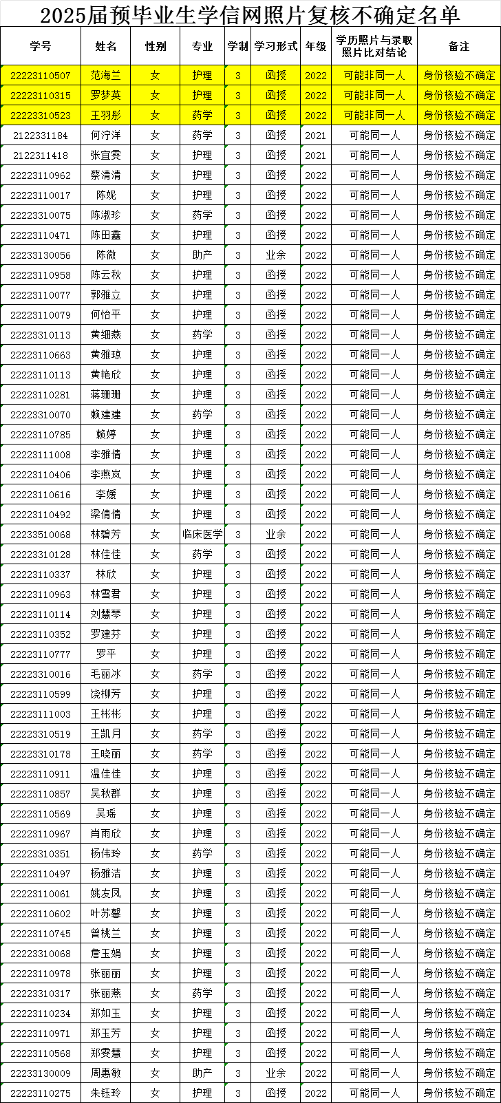 2025屆專科預畢業學生電子照片(未照相除外)采集已于今年7月12日前完成,電子照片(未照相除外)現已上傳學信網。為了確保2025屆預畢業學生電子學籍信息的正確性和完整性,現將核對電子學籍信息(含學籍學歷照片)有關事項通知如下: