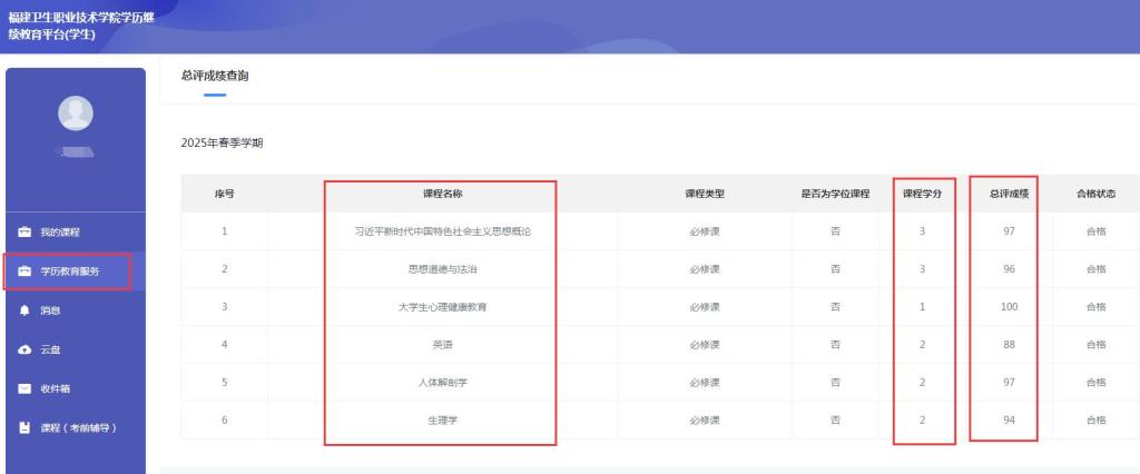 申請方式:請下載模版(詳見班級群),填入個人信息及總評成績向所屬班級班主任提交蓋章申請。成績查詢可登錄“福建衛生職業技術學院學歷繼續教育平臺——學歷教育服務——總評成績查詢”。