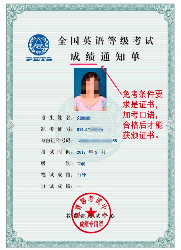 《教育部關于開展現代程教育試點高校網絡教育部分公共基礎課全國統一考試試點工作的實施意見》(教高[2004]5號)文件中,對于免考的規定,第三條為:除英語專業外,獲得全國公共英語等級考試(PETS)三級或以上級別證書者,可免考“大學英語”。根據文件精神,除英語專業外,必須獲得合格證書者,才可免考大學英語。