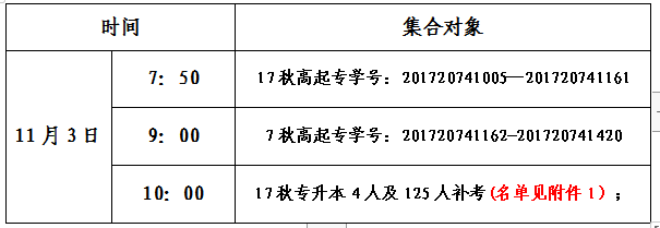 二、集合時間和對象(補考125人,17秋全體護理學專業學生):