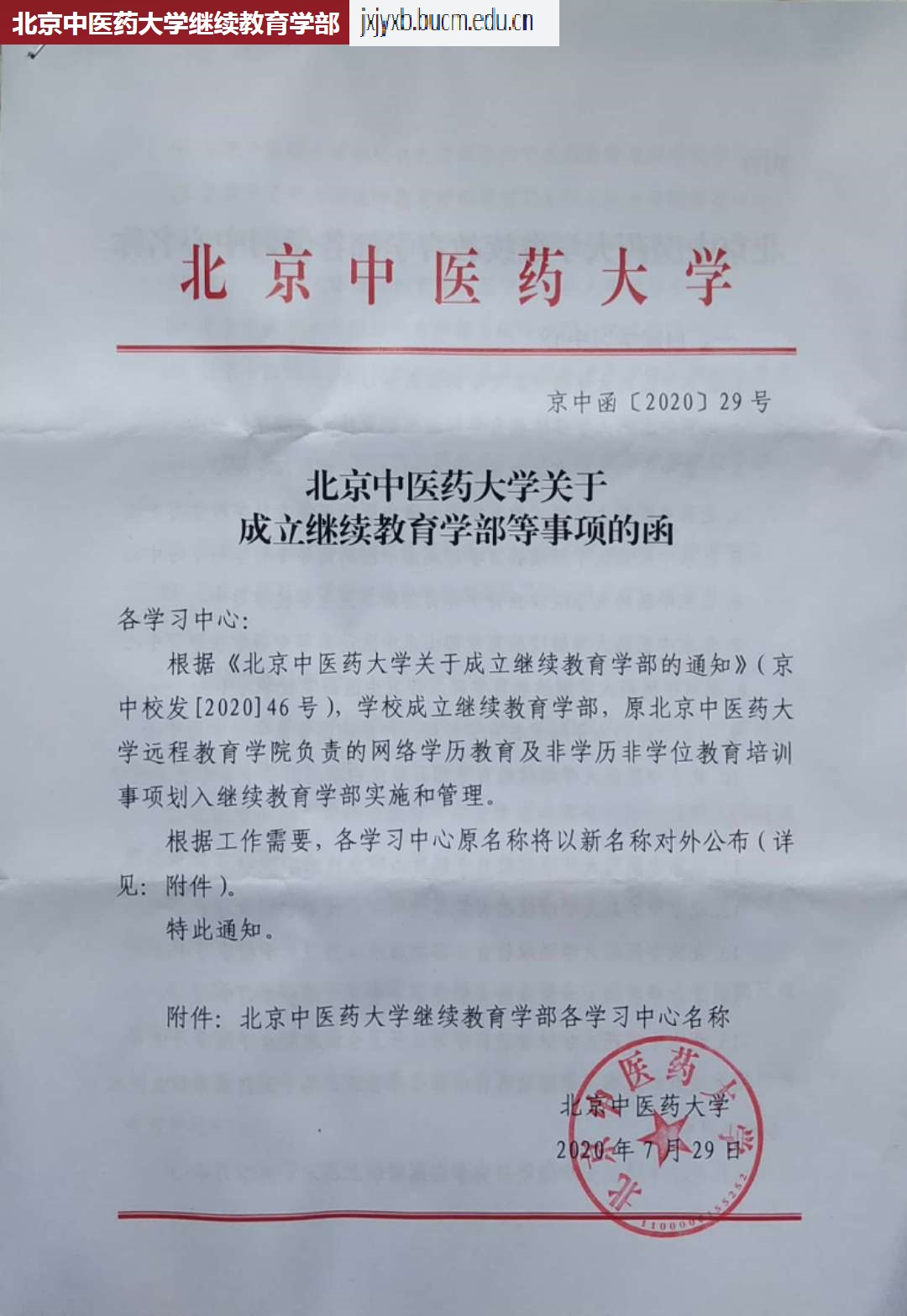 根據《北京中醫藥大學關于成立繼續教育學部的通知》(京中校發【2020】46號),北京中醫藥大學成立繼續教育學部,原北京中醫藥大學遠程教育學院負責的學歷教育及非學歷非學位教育培訓事項劃入繼續教育學部實施和管理。