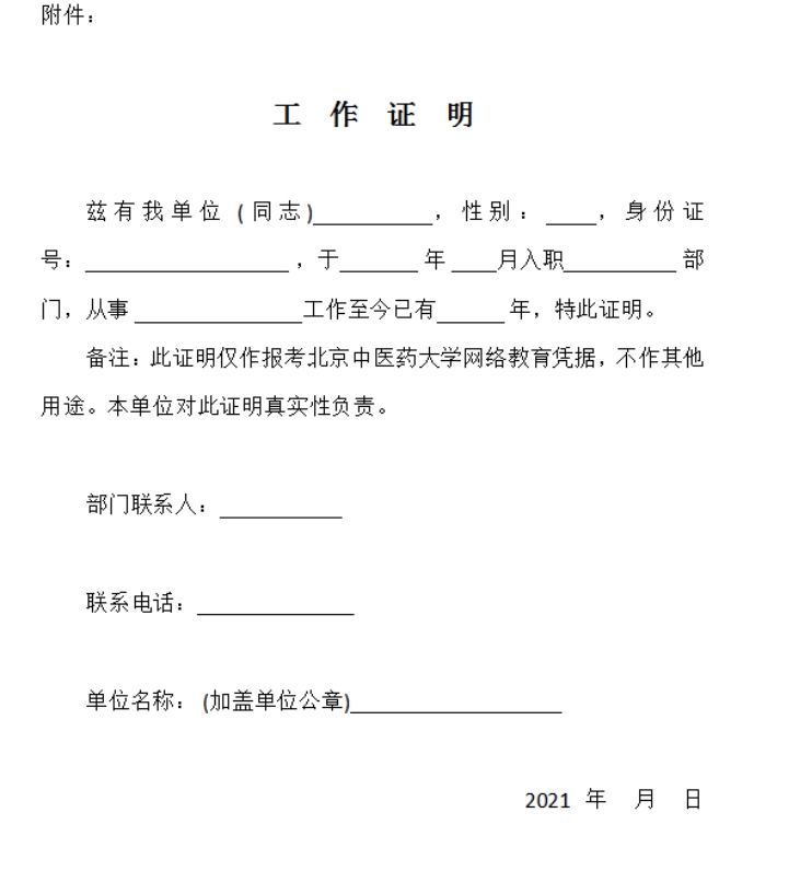 ①網上打印的報名表(須單位蓋章簽字、學生簽字)、工作證明(見附件,須單位蓋章)各1份;
