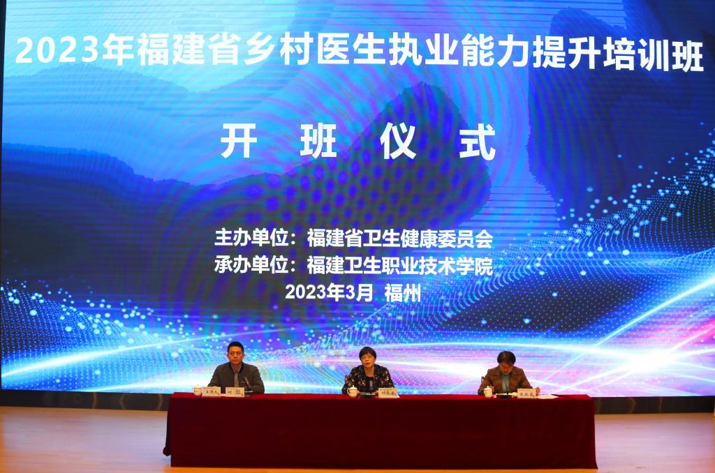 3月27日,2023年福建省鄉(xiāng)村醫(yī)生執(zhí)業(yè)能力提升培訓(xùn)班開班儀式在我校學(xué)術(shù)廳舉行。福建省衛(wèi)生健康委員會(huì)(以下簡稱省衛(wèi)健委)基層處處長付冬香、學(xué)校副校長朱扶蓉出席儀式并講話。護(hù)理學(xué)院、醫(yī)學(xué)院、健康管理系等院系負(fù)責(zé)人及340名鄉(xiāng)村醫(yī)生參加開班儀式。開班儀式由繼續(xù)教育學(xué)院副院長何烜主持。