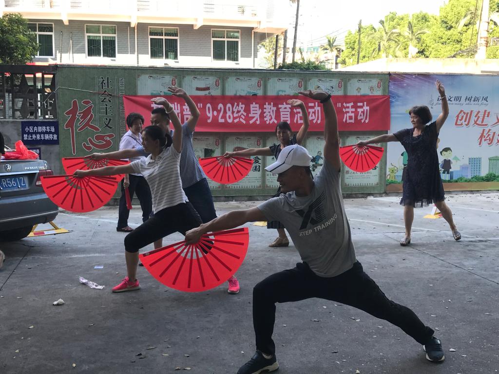 基礎部以“9?28終身教育活動日”為契機,開展社區功夫扇培訓活動,吸引了很多本不愿從事體育鍛煉的居民,投身到了學習鍛煉的熱潮中,活動不僅幫助社區居民強身健體,滿足了大家求新、求知、求美的愿望,更營造全民學習、終身學習的良好氛圍。