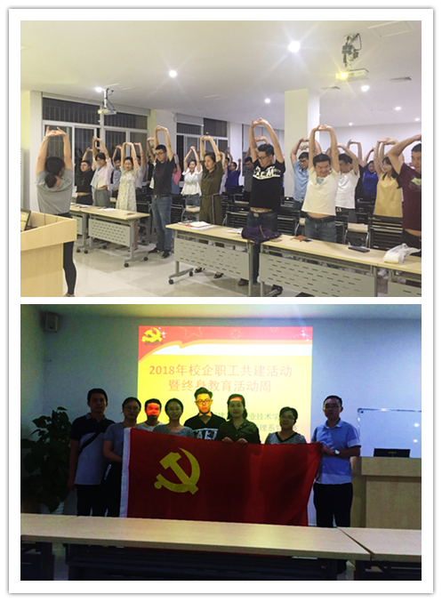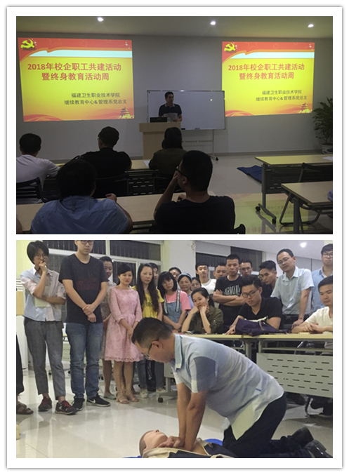 本次活動由繼續(xù)教育中心何烜老師主持,管理系教師黨員王國浩講解演示心肺復(fù)蘇術(shù)的操作步驟,管理系教師黨員溫曉黛現(xiàn)場教授辦公室運(yùn)動放松方法,吸引了許多職工的積極參與。各位職工紛紛動手操作學(xué)習(xí),得到了出席教師黨員的指導(dǎo)。公司職工表示學(xué)到的知識實(shí)用性強(qiáng),能夠?yàn)樽陨淼慕】蛋l(fā)展有促進(jìn)作用。此次活動積極營造了終身教育、終身學(xué)習(xí)的良好社會氛圍;大家深刻地意識到終身學(xué)習(xí)的重要性,表示將繼續(xù)深入學(xué)習(xí)貫徹習(xí)近平新時(shí)代中國特色社會主義思想和黨的十九大精神,培育和弘揚(yáng)社會主義核心價(jià)值觀。