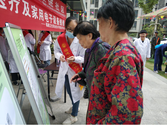 醫療及家用儀器維修, 貼心服務在入戶。由第二黨支部書記鐘偉雄老師帶隊,醫療設備應用技術專業的師生自備專門維修設備和耗材,滿足社區居民日常家用電子儀器的維修需要,同時用專業知識向居民宣傳家用小型醫療電子儀器的使用方法及保養常識。活動中,師生還針對個別居民家不方便搬動家電到現場的特殊情況,開展入戶上門檢測和維修服務,用專業技能“喚醒點亮”廢舊家電。