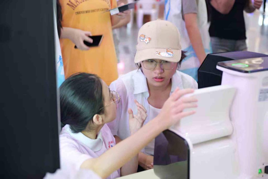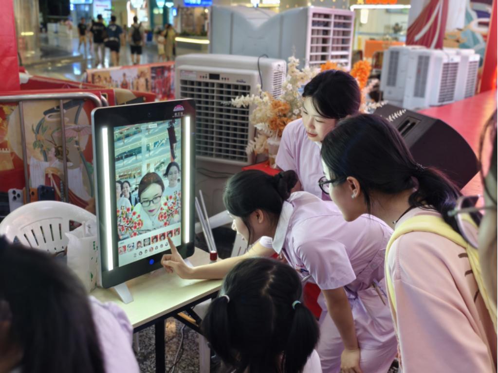 健康美麗咨詢臺配備專業(yè)皮膚檢測儀與魔妝鏡,為居民進(jìn)行面部膚質(zhì)分析與AI妝容試妝。檢測儀能夠清晰顯示皮膚水分、油脂、毛孔、色斑等狀況,提供專業(yè)精準(zhǔn)的美容護(hù)膚建議。