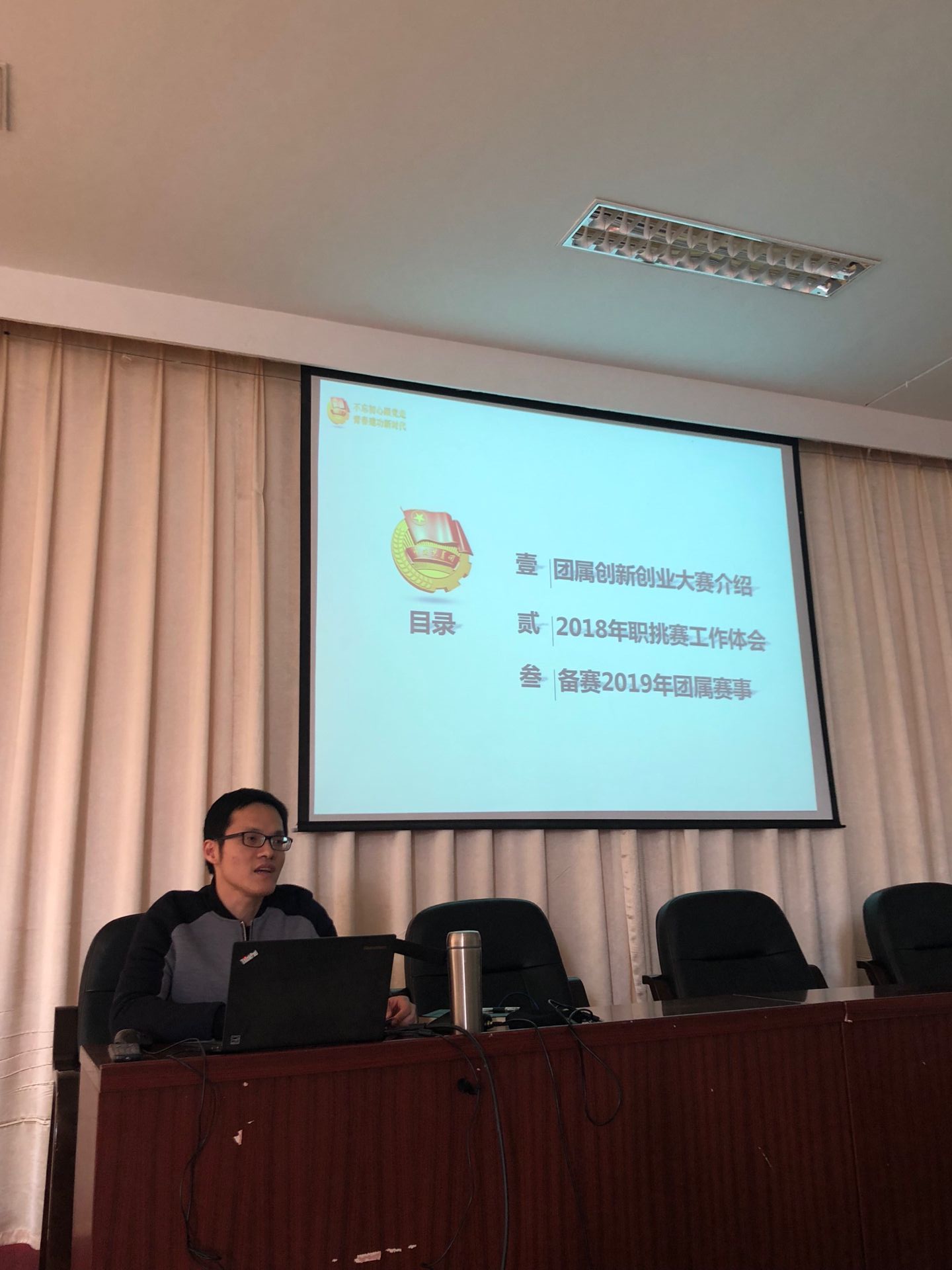 黃曦書記作題為《創(chuàng)新創(chuàng)業(yè)創(chuàng)未來·青春建功新時(shí)代》的報(bào)告,從此次國家級(jí)團(tuán)屬創(chuàng)新創(chuàng)業(yè)大賽的規(guī)格、參賽組織工作的體會(huì)以及2019年備賽思路三個(gè)方面與大家進(jìn)行了交流分享。他深入淺出的闡述了此次大賽的立體全貌,形象生動(dòng)的描繪了參賽組織工作的酸甜苦辣,入木三分的總結(jié)了參賽作品的選報(bào)技巧。在最后,他提出創(chuàng)新創(chuàng)業(yè)工作需要學(xué)生出點(diǎn)子,教師指路子,發(fā)揮師生創(chuàng)新動(dòng)能,共同致力創(chuàng)新創(chuàng)造,并祝愿來年學(xué)院創(chuàng)新創(chuàng)業(yè)大賽再獲佳績!