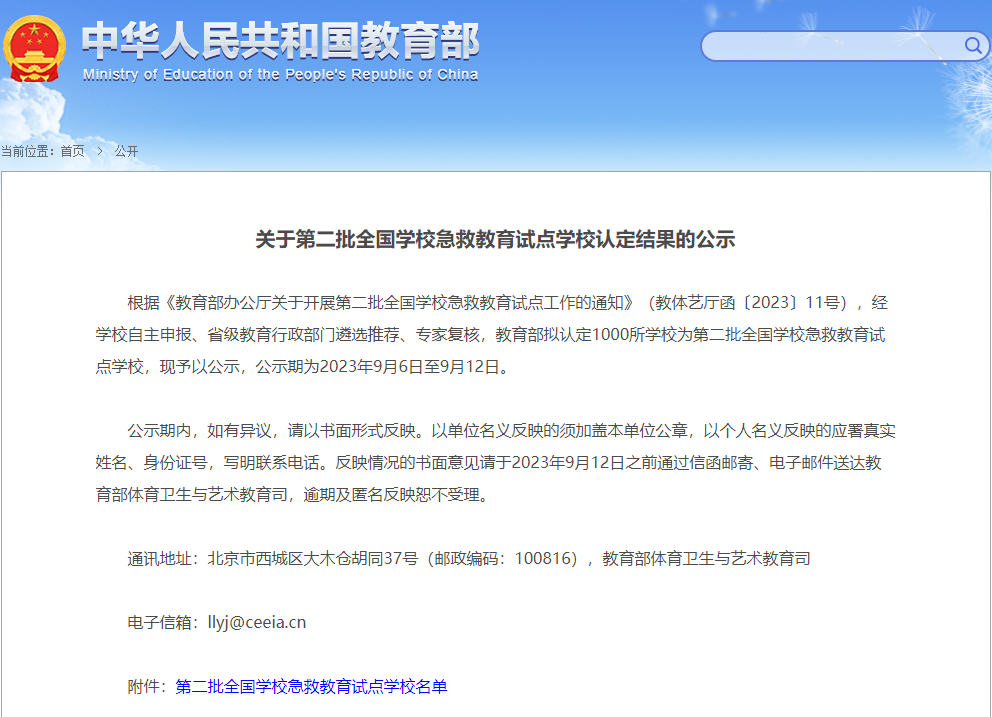 近日,教育部公示第二批全國學校急救教育試點學校認定結果,我校名列其中。