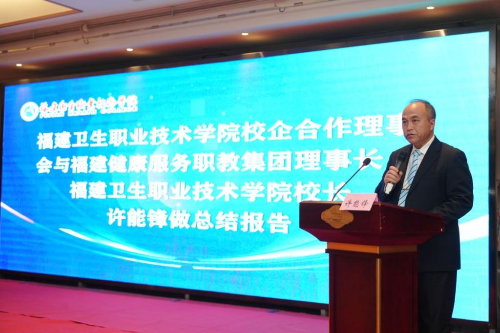會議最后,我校校長許能鋒作總結發言。他希望集團成員們攜手努力,一是加強資源共享,切實提升人才培養成效;二是深化產教融合,服務衛生健康產業發展;三是打造平臺,探索衛生健康職教特色之路,共同走出、走好一條具有福建特色的醫藥衛生健康職業教育高質量發展之路。