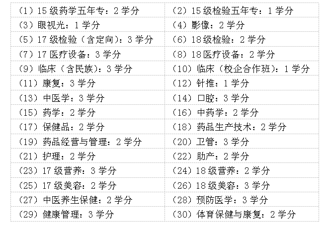 5.各專業學生在校期間須修滿公共選修課學分如下:
