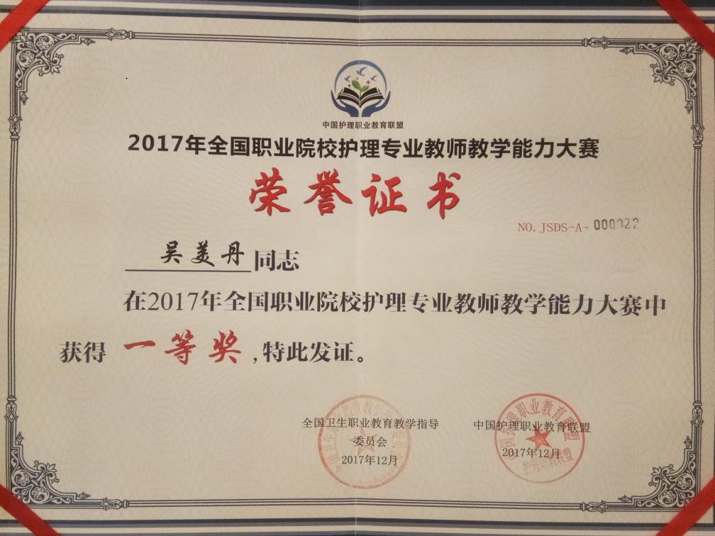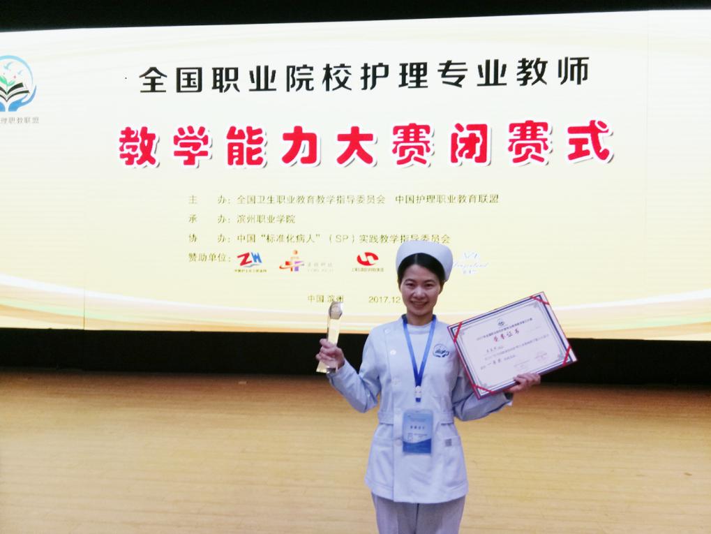 榮譽的背后是學院多年以來技能競賽的沉淀,是領導的充分信任,是同事的大力協助,是學生的默默支持,更是吳美丹老師的日夜備戰。通過競賽,全面考核了我院教師的教學能力、學術水平、職業素養及臨床護理基本技能操作水平,檢驗和展示我院護理專業教學改革成果。